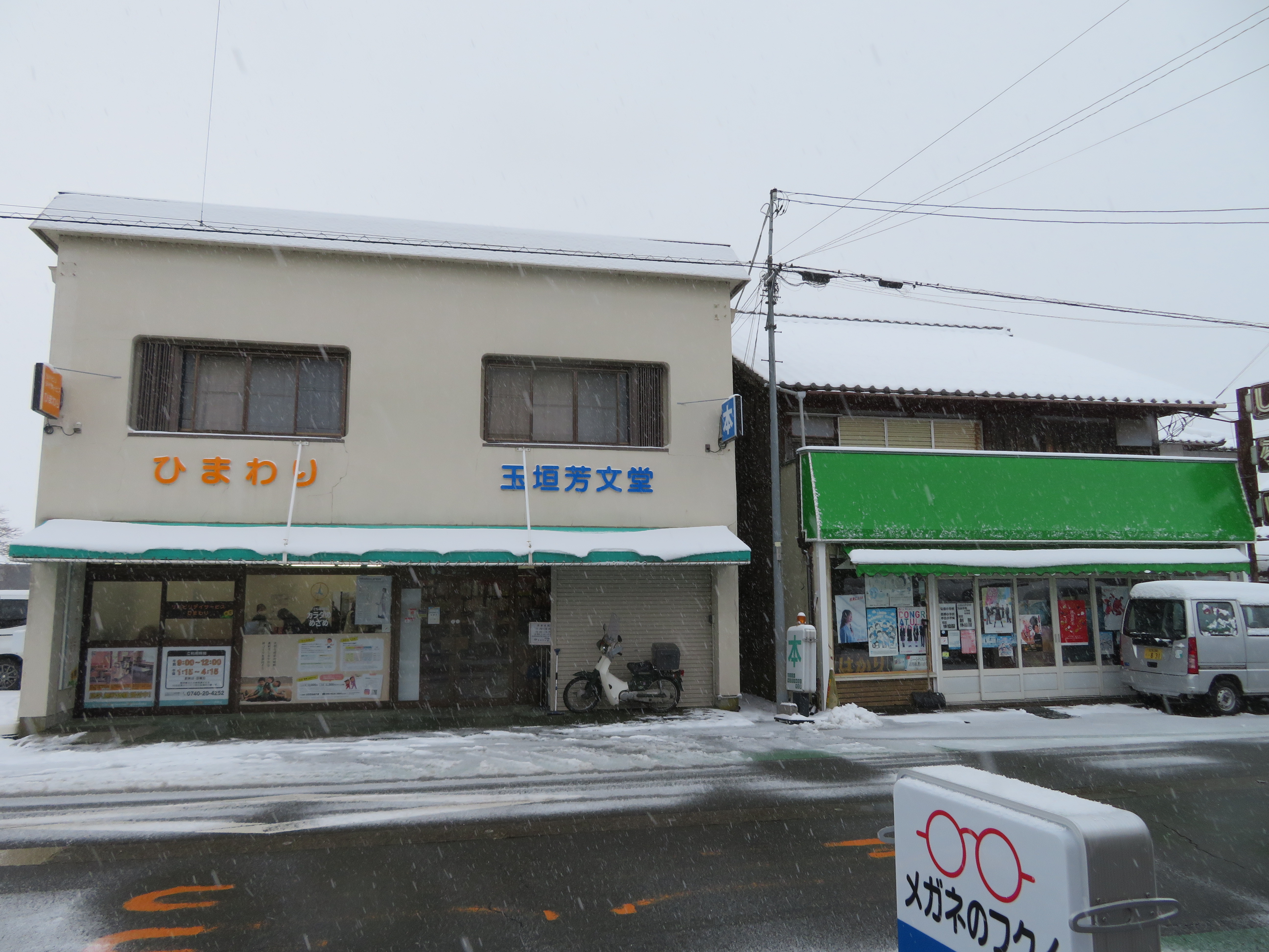 「新年、明けましておめでとうございます」皆さんはどんなお正月を過ごされましたか?私は1〜2日までテレビにクギ漬けで、1日は実業団の駅伝を、2日は箱根駅伝を見て過ごしました。3日の夜から長女が帰省して来て、4日には琵琶湖大橋を経て、湖東地方に出掛けました。お昼は、八日市の「はますし」で頂き、食後の入浴は「至福の湯」に立ち寄り、疲れをいやしました。出かけたのが遅かったので、安曇川に戻って来たのは、午後6時を過ぎていてすぐに夕食になりました。この日はとっておきの「カニ鍋」でおいしく頂きました。今日からお店の開店ですが、おそらく誰も訪ねて来られないと思います。今年一年、よろしくお願い申しあげます。「写真は、2日の夜から3日の朝にかけて積もった雪ですが、積雪5aくらいで助かりました」