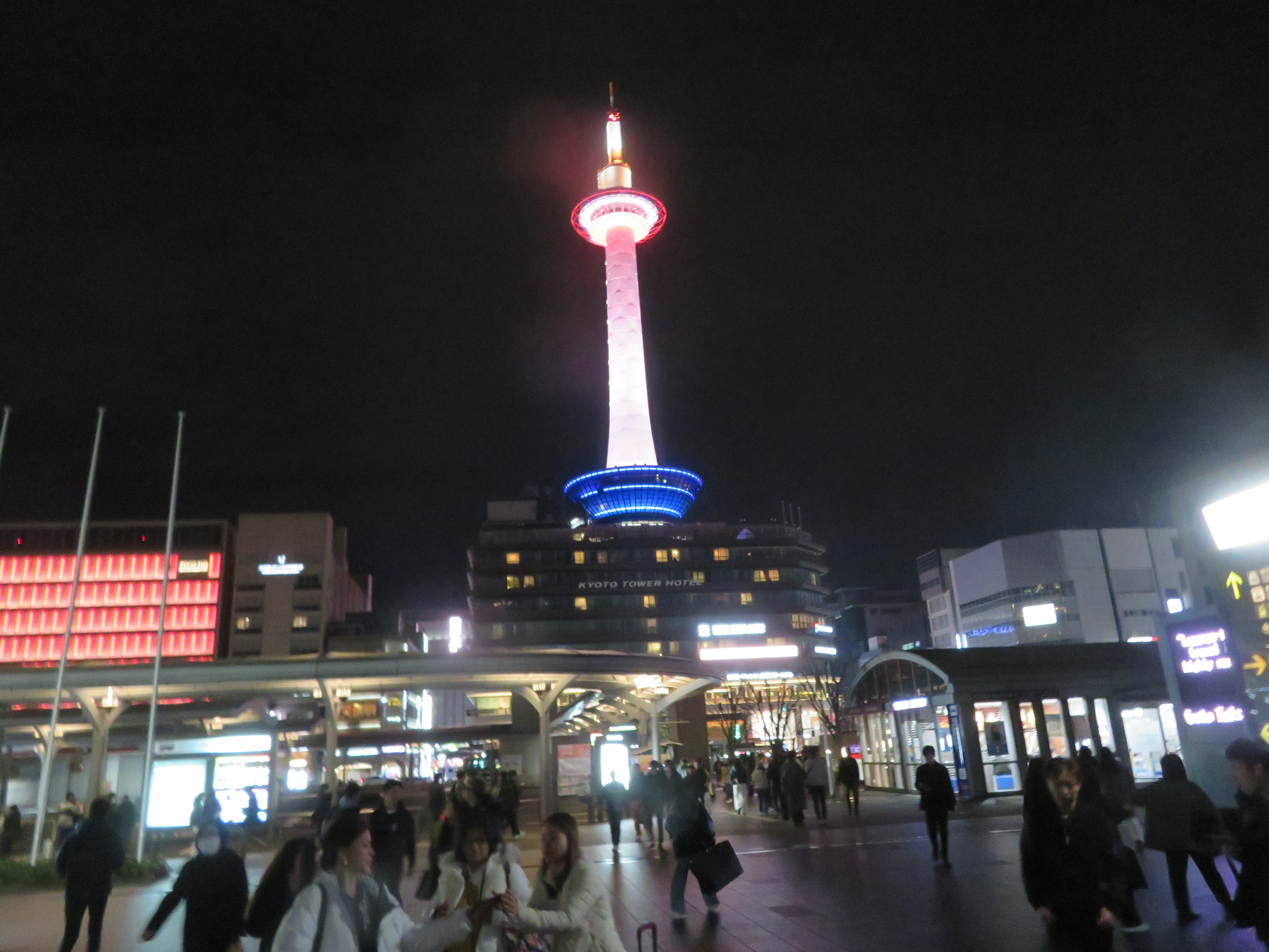 昨日は、大阪・大東市まで先祖のお墓参りに行って来ました。年々、大阪も遠く感じるようになり、後何年続けられるか心配になりました。例年なら駅前でS先生と待ち合わせするのですが、7月にお亡くなりになり寂しい限りです。お墓参りが終わると京橋まで戻り、昼食を取りました。すでに午後2時になっていたので、空腹感は充分でした。1600円のトンカツ定食を頂き、1杯だけですが生ビールも飲みました。せっかくなので「京阪モール」に立ち寄り、嫁さんは何かを買い求めました。「5000円でお釣りがあったわ」と話していましたが、何を買ったのかは知りません」。もう、大阪駅まで戻るのが面倒なので、京阪電車で京都三条まで出て、地下鉄を乗り継ぎ山科駅まで戻って来ました。山科駅からの接続が悪く、堅田駅止まりに乗り、その先、近江舞子駅止まりに乗り、さらに近江今津駅行きと2度乗り換え、安曇川駅に午後5時40分に帰って来ました。今日は、お店の大掃除とワックスをかけ、一息入れています。さて、今年も残すところ、後数時間になりました。皆さん、どうぞ良い年をお迎え下さい。今年、一年間お付き合いを下さいましてありがとうございます。新年は5日より営業しますので、よろしくお願い申し上げます。「写真は、2024年12月の京都タワーと駅前の光景です」